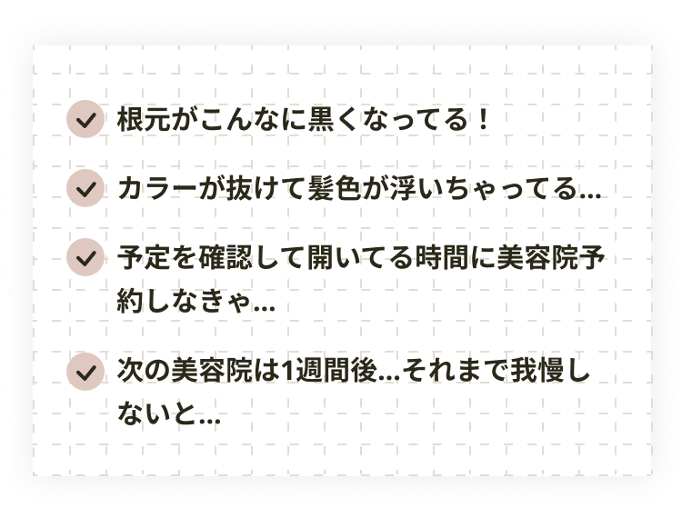 ただ、頻繁に美容室に行くとお金はかかるし、かと言って期間をあけると髪色がプリンになるし…