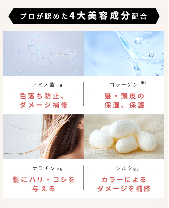 4大美容成分と言われる「ケラチン」「アミノ酸」「コラーゲン」「シルク」がタップリ配合されたトリートメントで、これが約3日分もついてきちゃうんです!