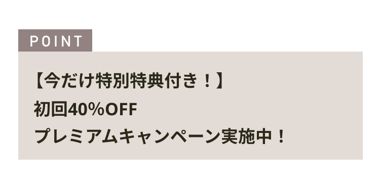 なんと!初回40%OFFで始められるプレミアムキャンペーンを実施中なんです!