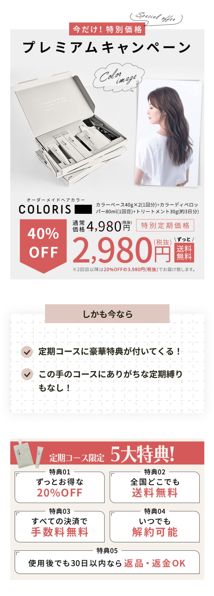 しかもサロン通いに比べて圧倒的に高コスパ!初回40%OFFのキャンペーンのおかげで、2,980円で始められます!