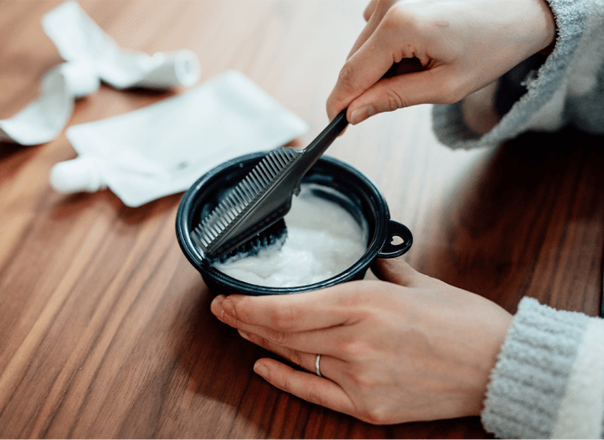 商品が届いたら、付属のカップとくしを使って薬剤を混ぜて…